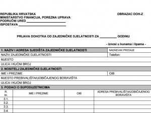 Prijava dohotka od zajedničke djelatnosti (Obrazac DOH-Z)