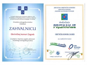 OKZ uručeno priznanje za sudjelovanje na manifestaciji Zeleno plavo i zahvalnica za potporu Hrvatskom andragoškom društvu