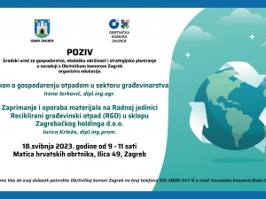 Gradski ured za gospodarstvo, ekološku održivost i strategijsko planiranje Grada Zagreba u suradnji s Obrtničkom komorom Zagreb organizira edukaciju o gospodarenju otpadom u sektoru građevinarstva.
