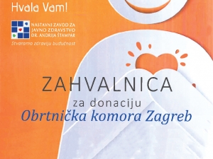 Obrtnička komora Zagreb primila je zahvalnicu od Nastavnog zavoda dr. Andrija Štampar za svoj nesebičan trud prema zavodu.