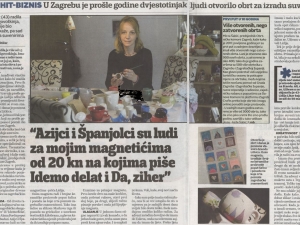 Jutarnji list u današnjem broju, 4. travnja, donosi priču o povećanju broja obrta na području grada Zagreba i Zagrebačke Županije gdje je u zadnjih godinu dana otvoreno 500 novih obrta. Među njima je i Lidija Likar, obrtnica koja je nakon 15 godina rada kao knjigovodkinja, počela izrađivati magnetiće i šalice sa zagrebačim simbolima.