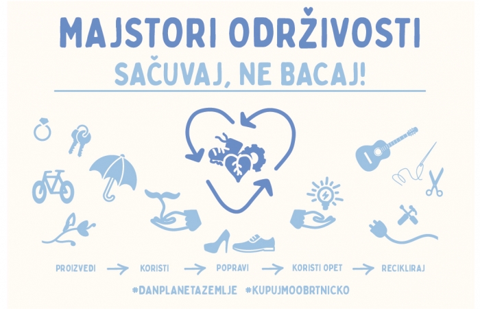 Povodom Dana planeta Zemlje, Obrtnička komora Zagreb, u suradnji sa svojim udruženjima i gradovima partnerima, drugu godinu zaredom organizira projekt „Majstori održivosti – sačuvaj, ne bacaj!“.