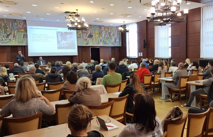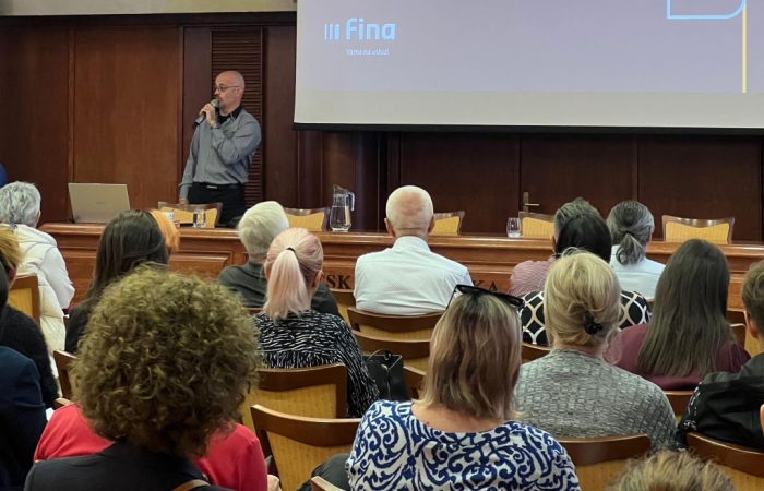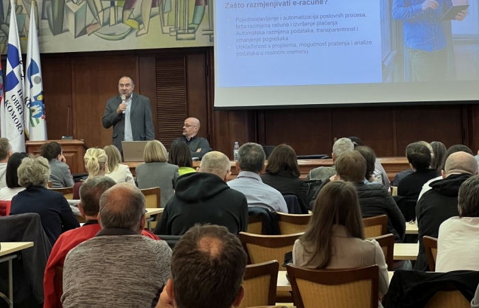 Predavači FINA-e Viktor Obrol, dipl.oec i Nikola Grendov, dipl.oec kroz konkretne primjere su pojasnili način primjene novog sustava te na kraju odgovorili na brojna pitanja prisutnih.